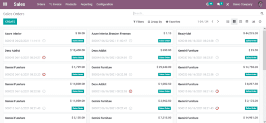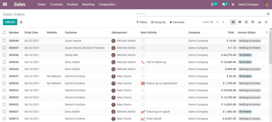 Odoo offers the effective reporting functionalities to help in gathering statistical analysis on the sales operations of the company.